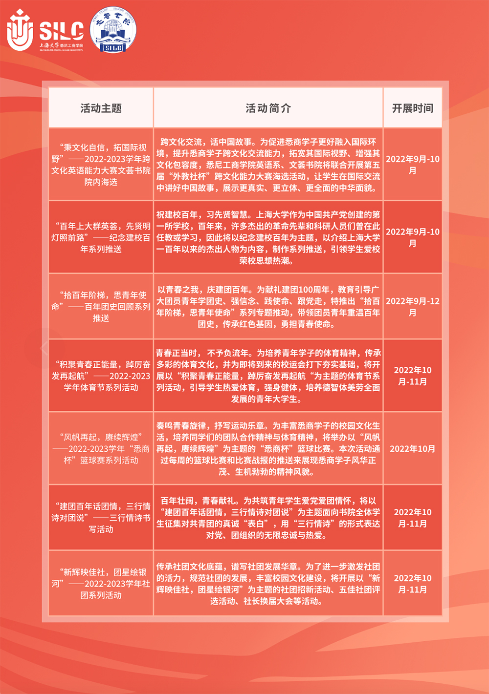 二、活动一览表
